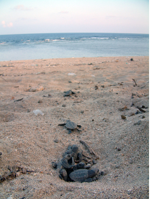 5)孵化直後の活発に前肢をバタバタさせる(フレンジー)時期を逃すと、遊泳力が低下し、速やかに沖に出ることができなくなってしまいます。