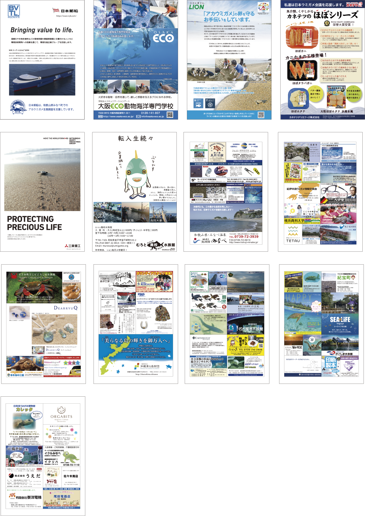 「日本ウミガメ誌」は日本ウミガメ会議の議事録として発行しております。本誌は会議の参加者へ配布するほか、行政も含め全国各地の関係者にも配布しております。産卵回数の推移などをまとめた重要な資料集として、多くの方の目に触れるものであり、実際に本誌の協賛広告を眺めるとウミガメに関心のある企業や団体が見えて面白いという声も毎年寄せられております。