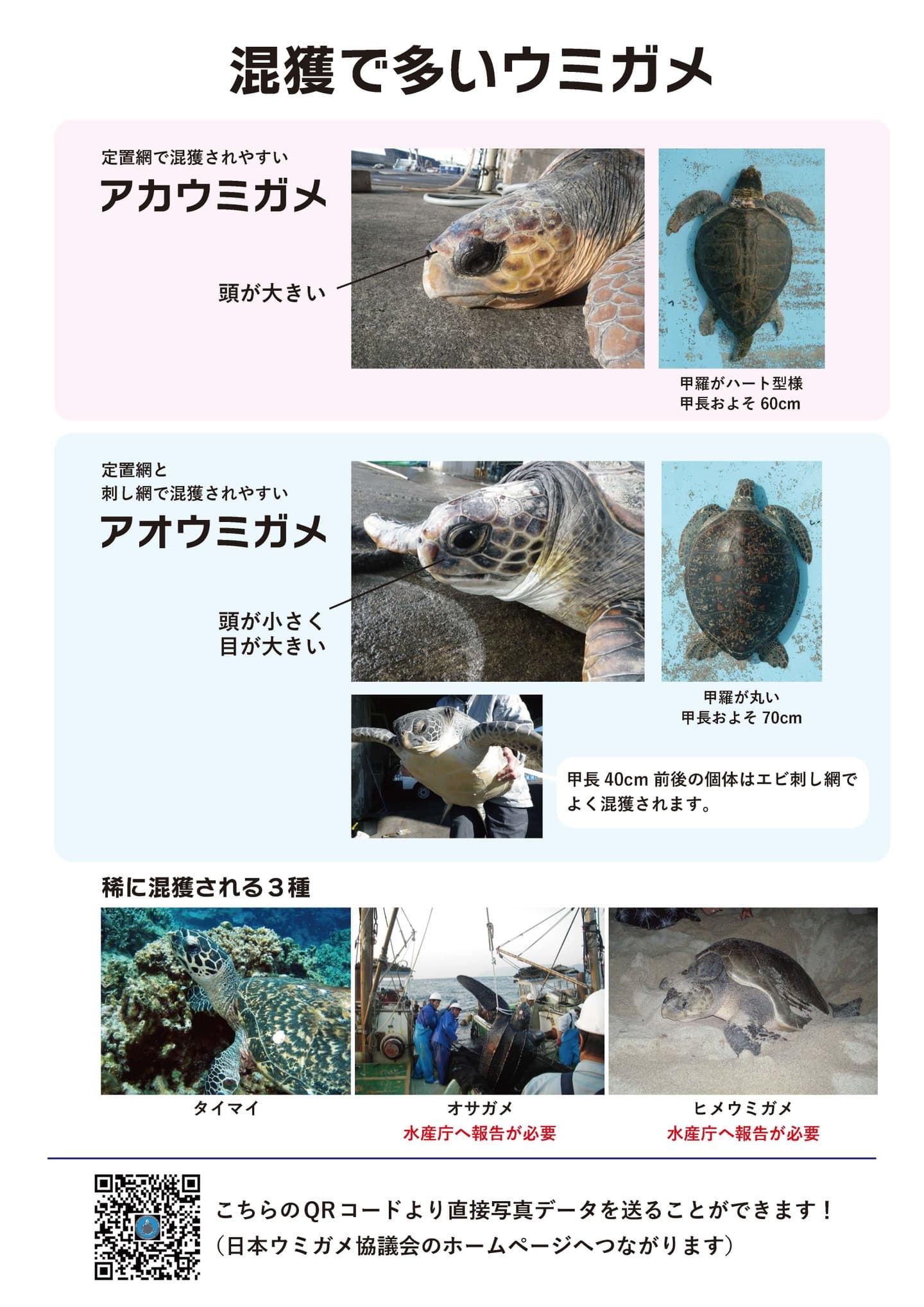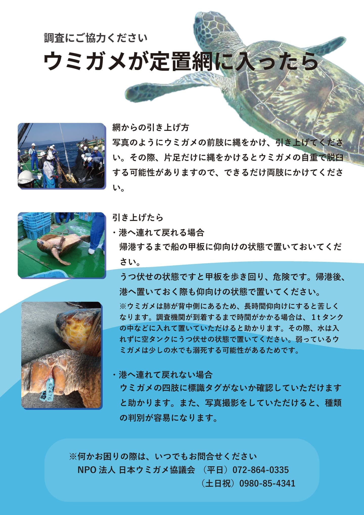 混獲したウミガメの対応について、漁業者様向けの資料を作成しました。