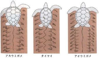 ウミガメ3種の足跡