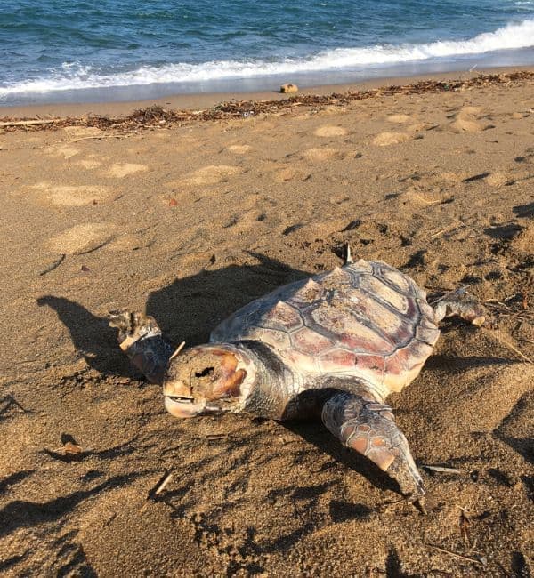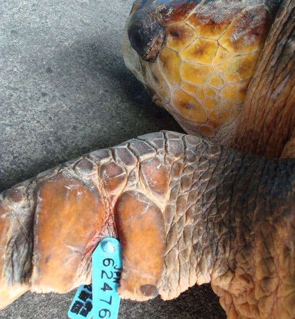 1.プラスチック製の標識は網に絡まりやすく、混獲や投棄された漁網にウミガメが絡まる原因とされている