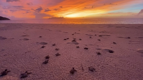 屋久島の代表的な浜である永田いなか浜では、屋久島ウミガメ研究会(現NPO法人屋久島うみがめ館)の活動により40年ほど前からその上陸産卵数等を確認する調査が行われてきました。日本ウミガメ協議会として調査を始めたのは2020年、まずは永田以外の浜の状況を把握することから開始し、2022年からは永田での生態調査業務をうみがめ館から引継ぎました。2023年からは永田いなか浜に調査基地を設置し、屋久島在住のサポートメンバーと一緒に5月から9 月の毎晩、浜を歩いています。