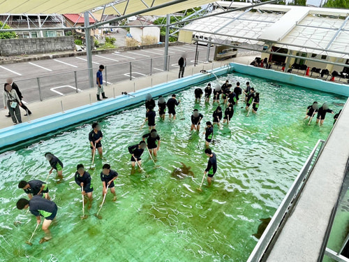 団体のお客さま向けに、プール掃除体験やサメの解剖教室などの様々な体験プログラムをご用意しています。お気軽にお問い合わせください。